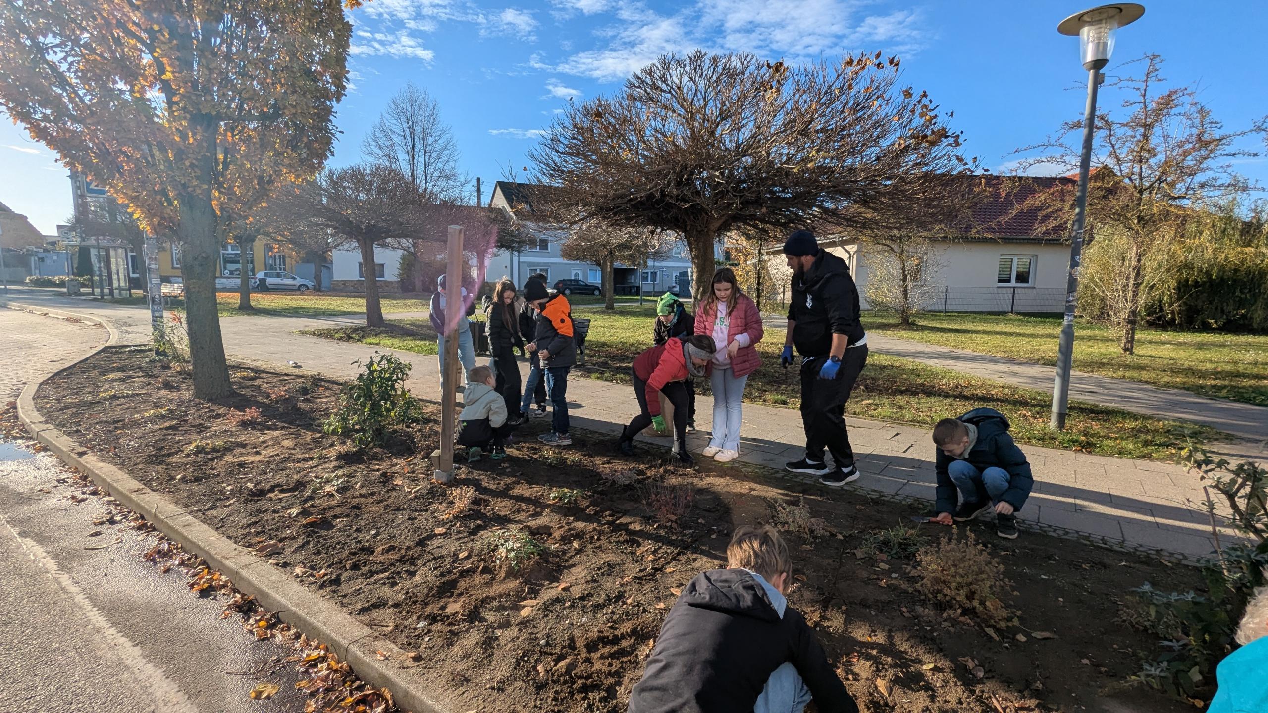 Die 4. Klasse der Grundschule Löderburg hat kürzlich tatkräftig das Beet an der Bushaltestelle am Dorfplatz bepflanzt. Unterstützt wurden die Schülerinnen und Schüler dabei von Herrn Hein vom Gartenverein „Am Wasserturm“, der seine fachkundige Hilfe anbot.